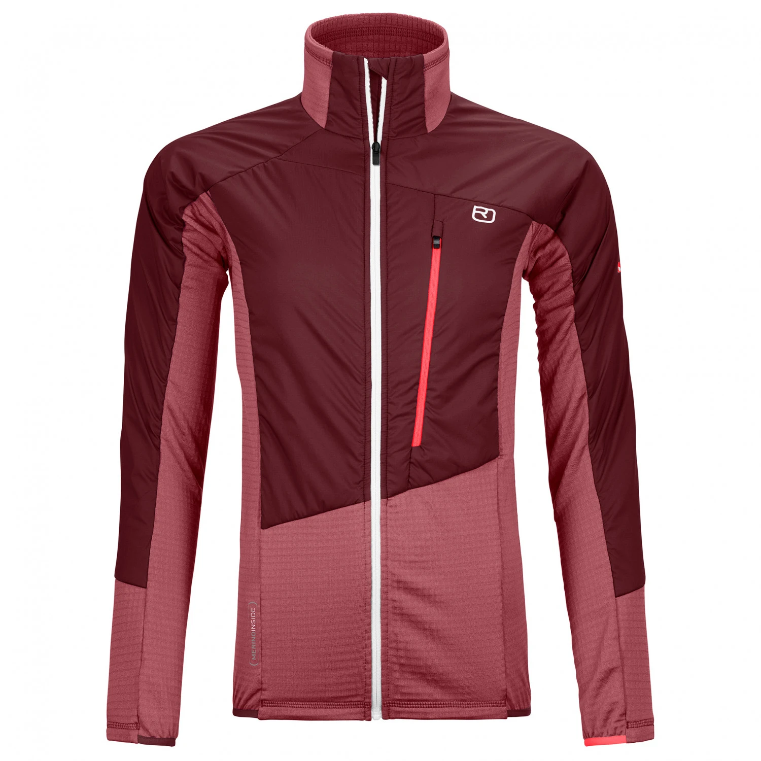 La veste isolante est équipée d’une grande poche poitrine, qui offre de la place pour une carte, le smartphone ou une barre de céréales. Le col montant protège le cou des courants d’air froids, tandis que les poignets et l’ourlet inférieur élastiques augmentent encore le confort. Parfait pour le prochain tour en région alpine : la Women’s Westalpen Swisswool Hybrid Jacket !